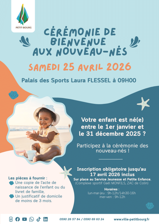 Dans le cadre de sa politique en faveur de la Petite Enfance, la Ville de Petit-Bourg est heureuse de célébrer, une fois de plus, la naissance des enfants nés au cours de l’année 2025.