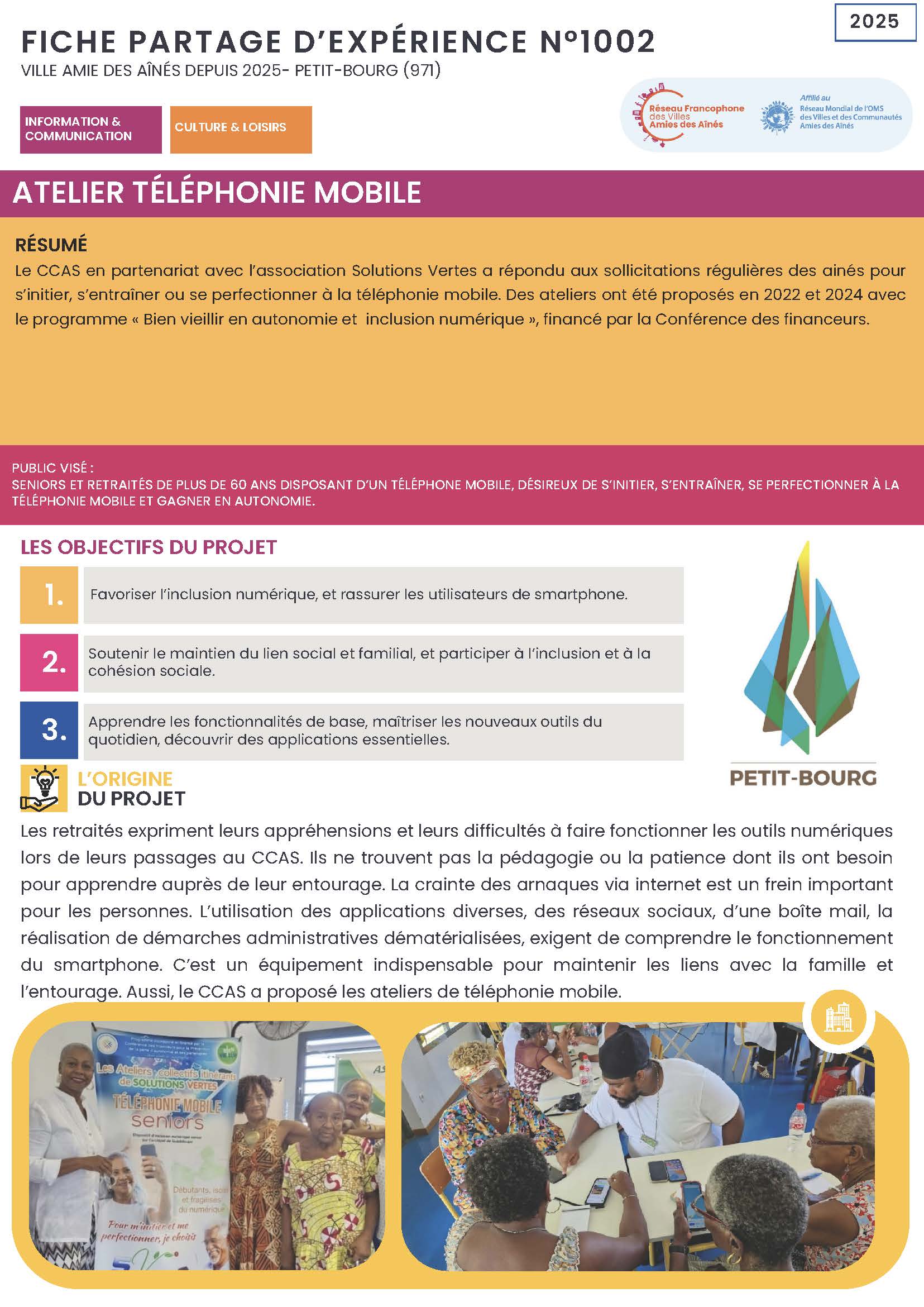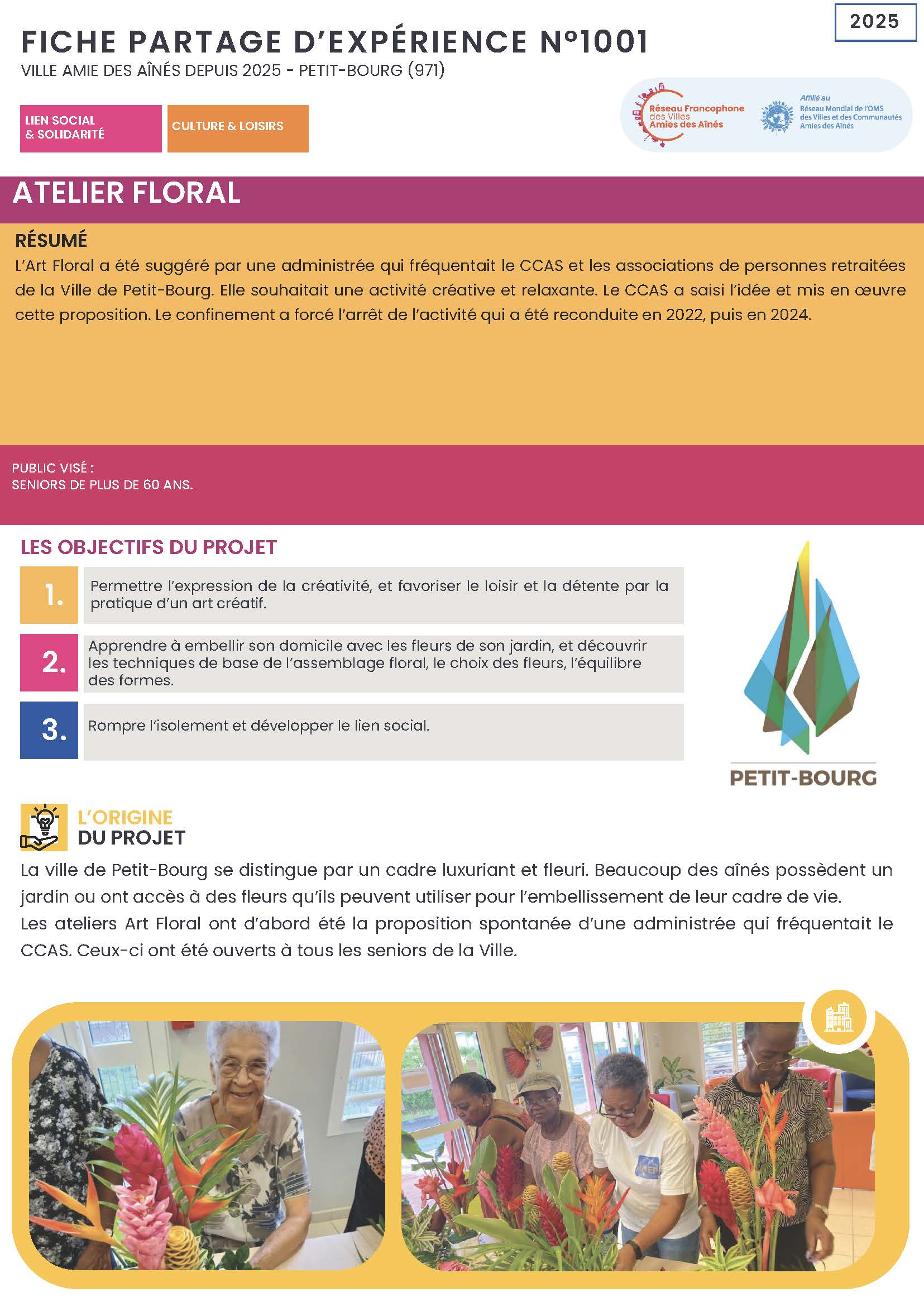La Ville de Petit-Bourg poursuit son engagement en faveur du bien-vieillir et de la solidarité intergénérationnelle en intégrant la démarche « Ville Amie des Aînés » (VADA), initiée par l’Organisation mondiale de la Santé (OMS).